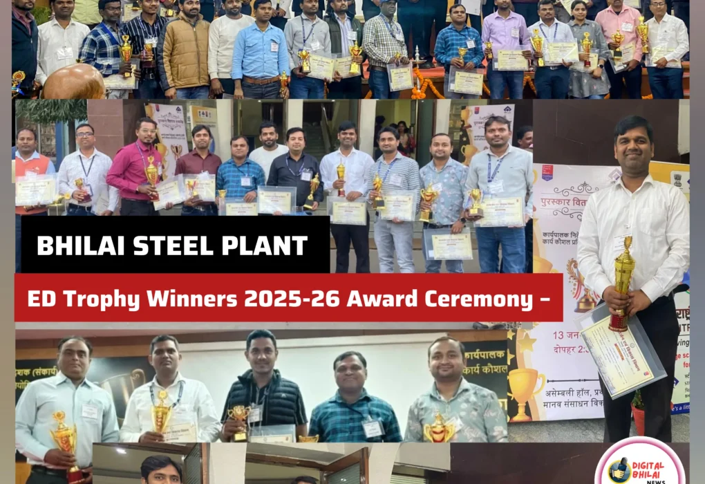 – DIGITAL BHILAI NEWS – (ED Trophy Winners Award Ceremony) भिलाई इस्पात संयंत्र (SAIL-BSP) में आज Executive Director (Works) Trophy – Work Skills Competition 2025-26 के विजेताओं का भव्य पुरस्कार वितरण समारोह आयोजित किया गया। मानव संसाधन विकास केंद्र के असेंबली हॉल में हुए इस कार्यक्रम में विभिन्न विभागों के कर्मचारियों को उनकी उत्कृष्ट तकनीकी…