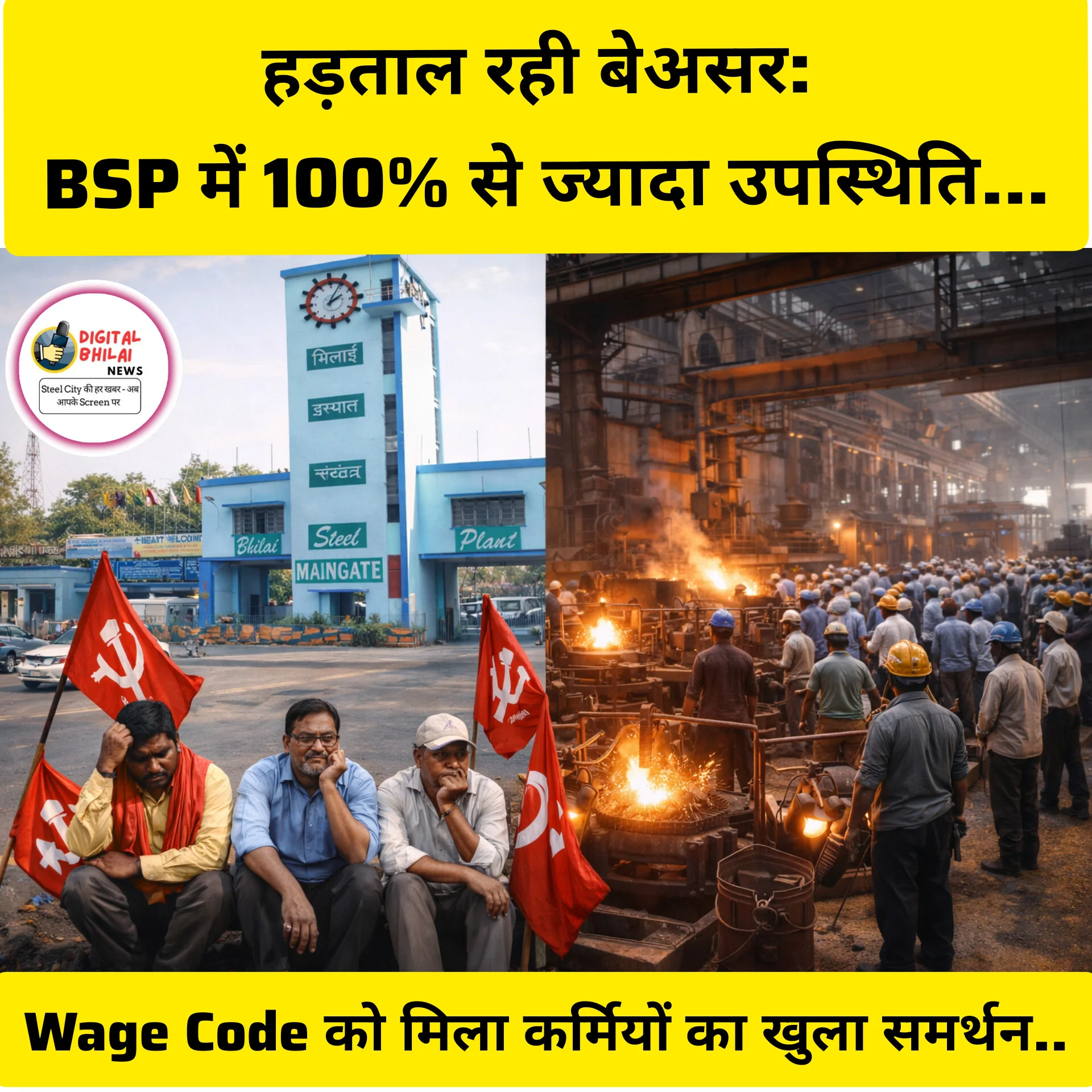 हड़ताल रही बेअसर: BSP में 100% से ज्यादा उपस्थिति, Wage Code को मिला कर्मियों का खुला समर्थन