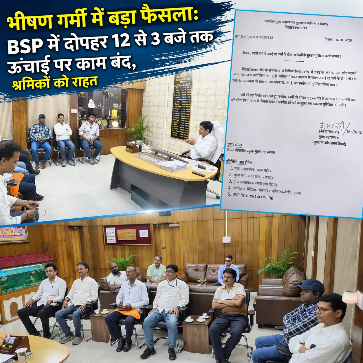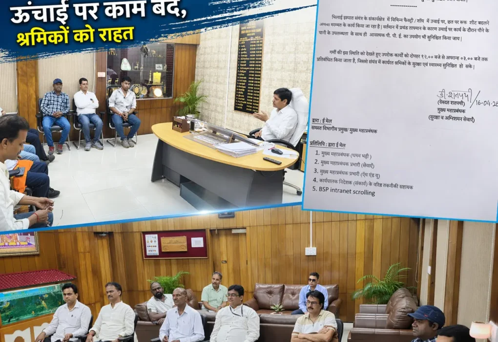 भीषण गर्मी में बड़ा फैसला: BSP में दोपहर 12 से 3 बजे तक ऊंचाई पर काम प्रतिबंधित, श्रमिकों को राहत!