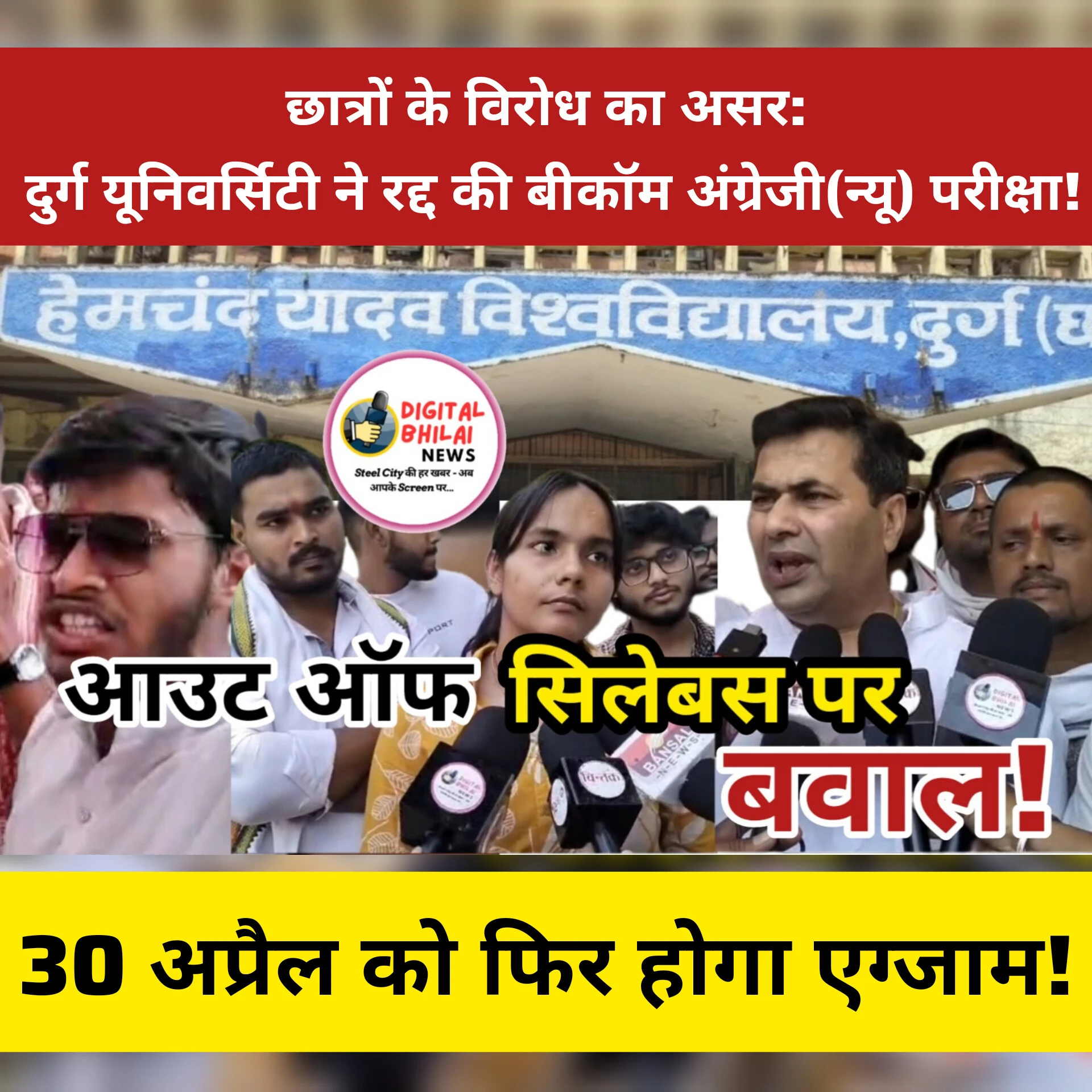 अगली खबर पढ़े 👉 Out of Syllabus विवाद के बाद बड़ा फैसला: दुर्ग यूनिवर्सिटी ने रद्द की बीकॉम फाइनल अंग्रेजी परीक्षा, 30 अप्रैल को दोबारा होगी!
