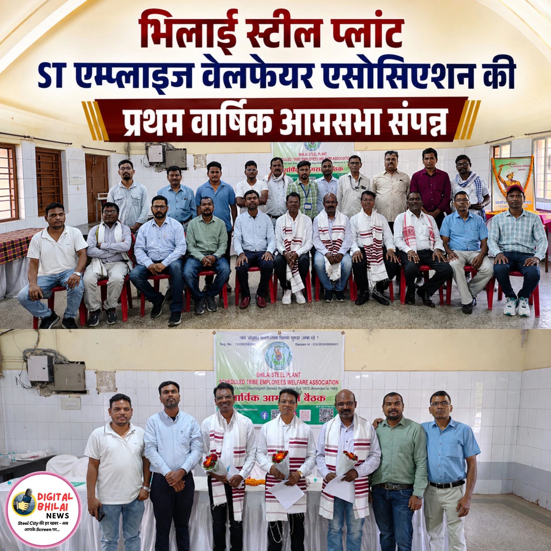 - दिनांक 26 अप्रैल 2026 (रविवार) को भिलाई स्टील प्लांट शेड्यूल्ड ट्राइब एम्प्लाइज वेलफेयर एसोसिएशन की प्रथम वार्षिक आमसभा (Annual General Body Meeting) का आयोजन इस्पात क्लब, सेक्टर-2 भिलाई में किया गया।