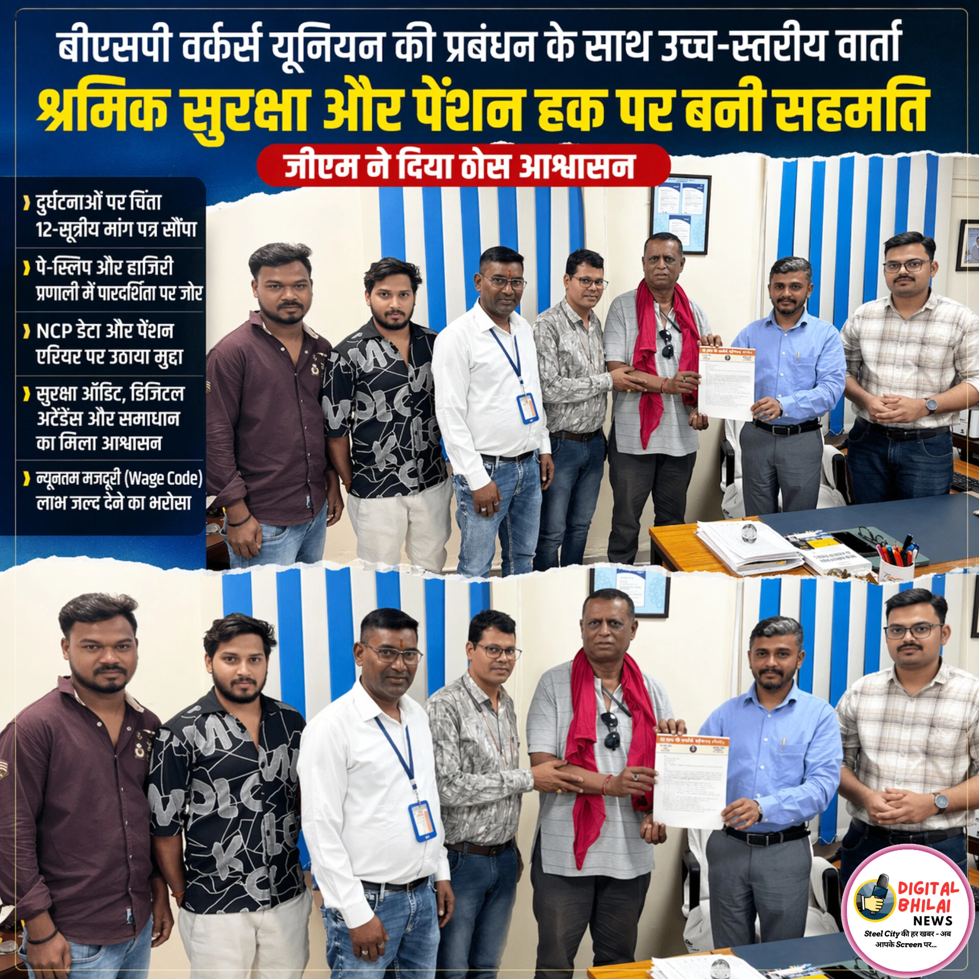 BSP में यूनियन-प्रबंधन बैठक: सुरक्षा, वेतन पारदर्शिता, पेंशन और न्यूनतम केंद्रीय वेतनमान लागू करने पर अहम चर्चा!