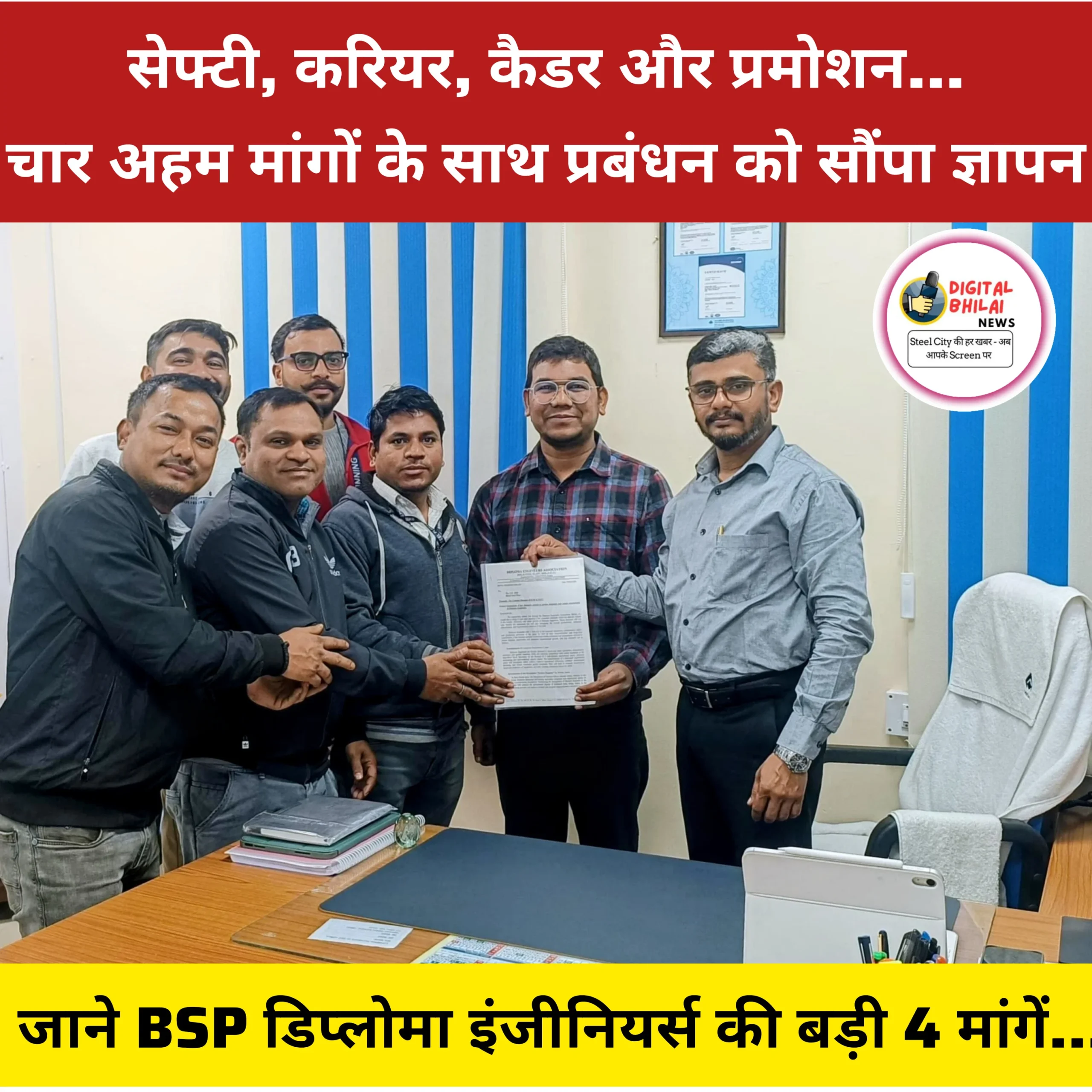 सेफ्टी से लेकर करियर ग्रोथ तक: डिप्लोमा इंजीनियर्स की चार बड़ी मांगें, BSP प्रबंधन को सौंपा गया मांग-पत्र
