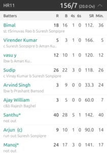 👉🏻इसके अलावा Abhi और Rajesh Baghel ने 1-1 विकेट लेकर HR11 की रनगति को नियंत्रित रखा।